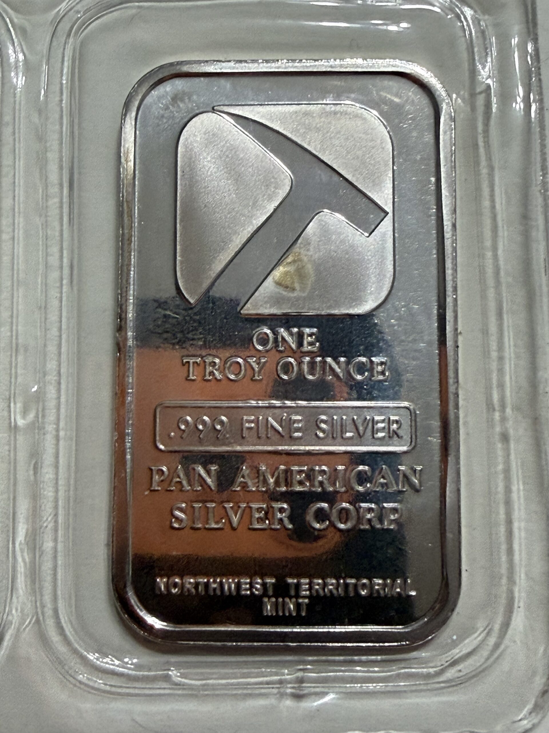 1 troy ounce .999 fine silver bar produced by Pan American Silver Corp and struck by Northwest Territorial Mint.