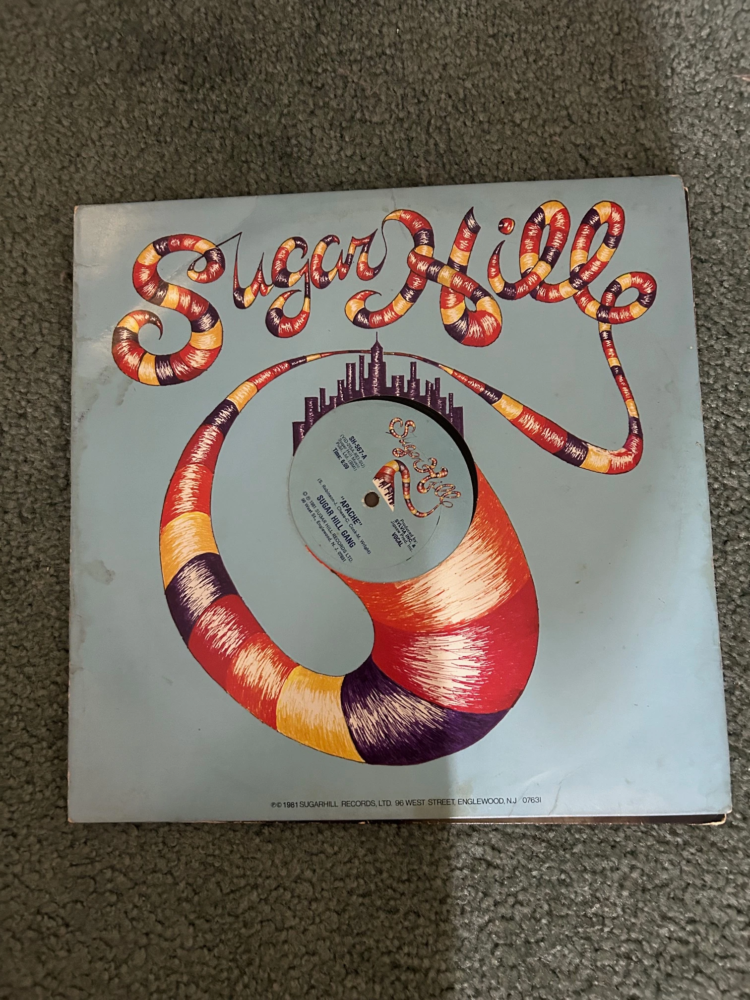 Sugar Hill Records release featuring early hip-hop era tracks. Vintage pressing. Cover shows wear. Vinyl condition not tested. Sold as-is.