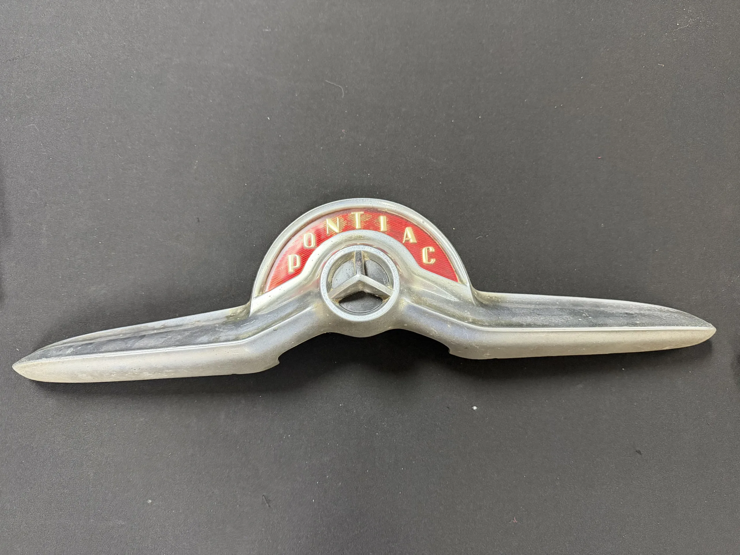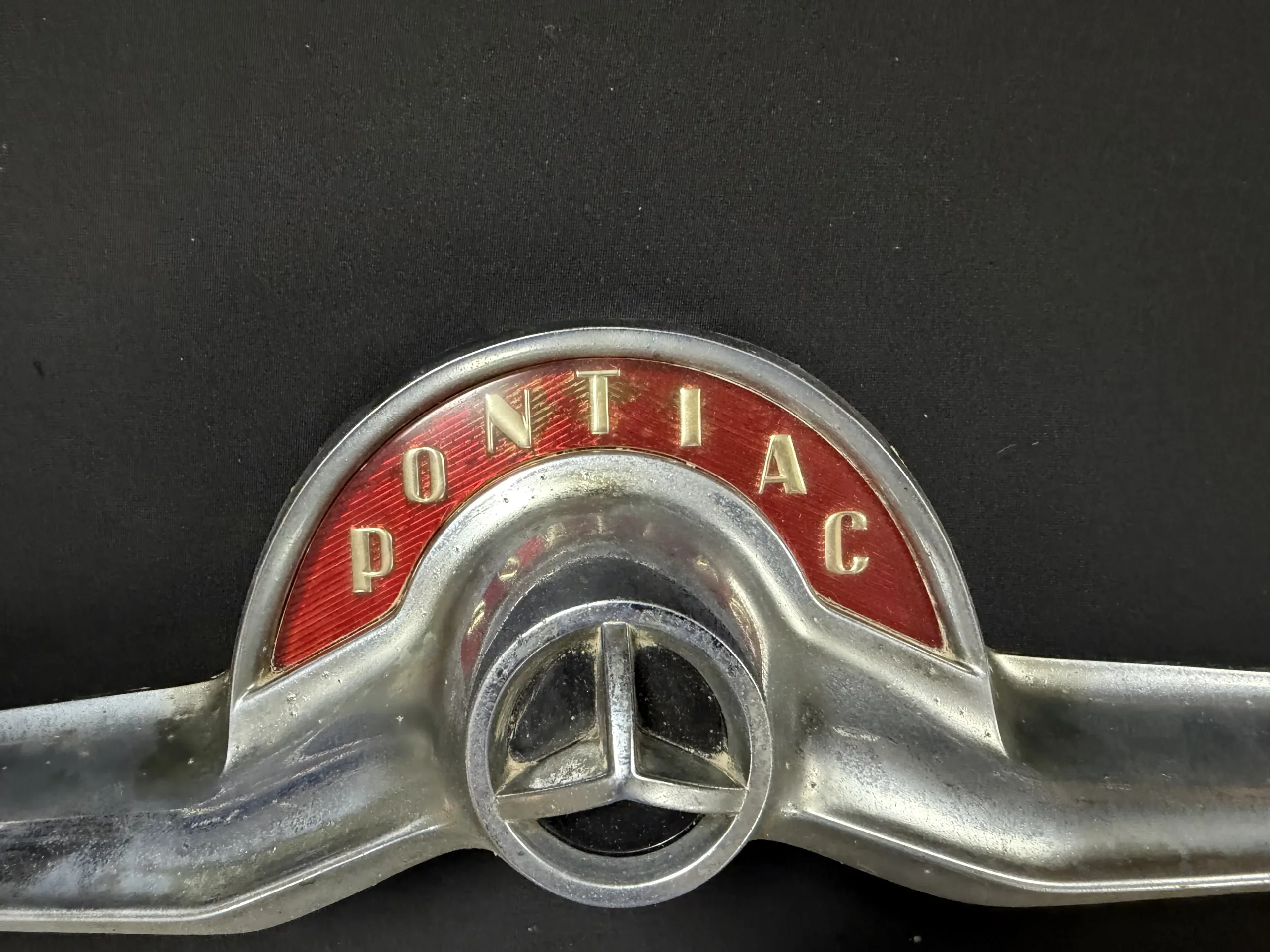 Vintage Pontiac automotive emblem badge.